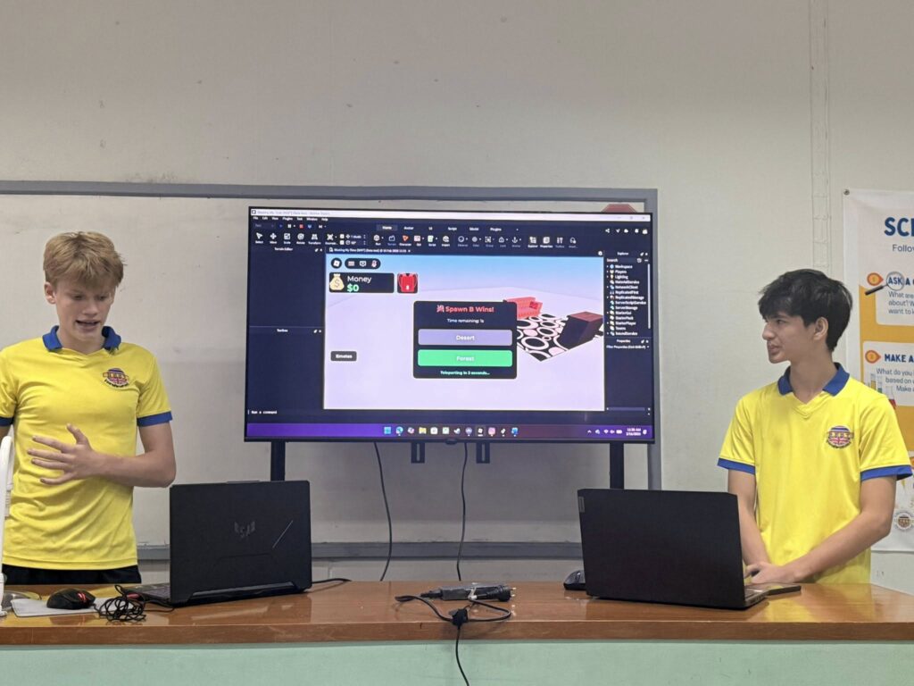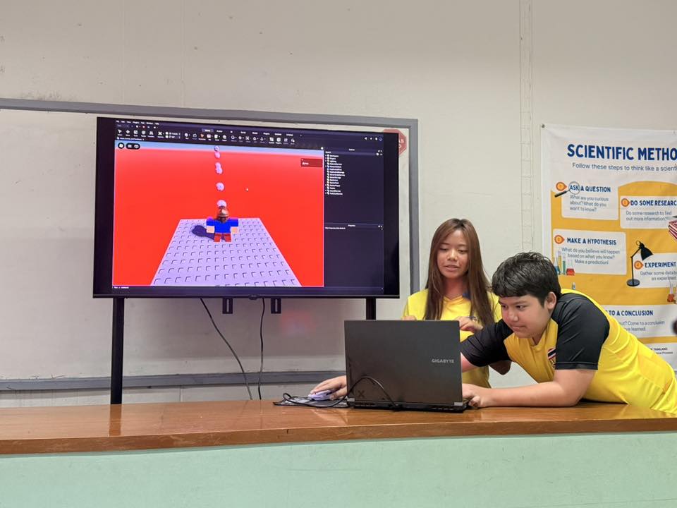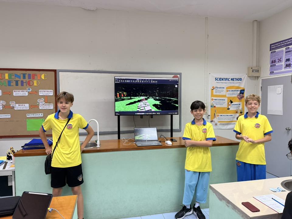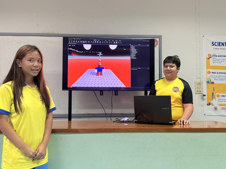 Students proudly showcased their creativity and technical skills by developing their own Roblox games.